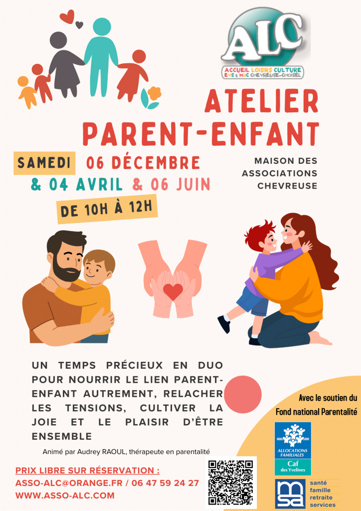 Les Ateliers Famille de l’ALC, qui réunissent les parents et les enfants, voire les grands-parents, ont lieu pour la saison tous les 1ers samedis du mois de 10h à 12h (sauf exception si vacances scolaires) dans la Maison des associations Claude Génot à Chevreuse.