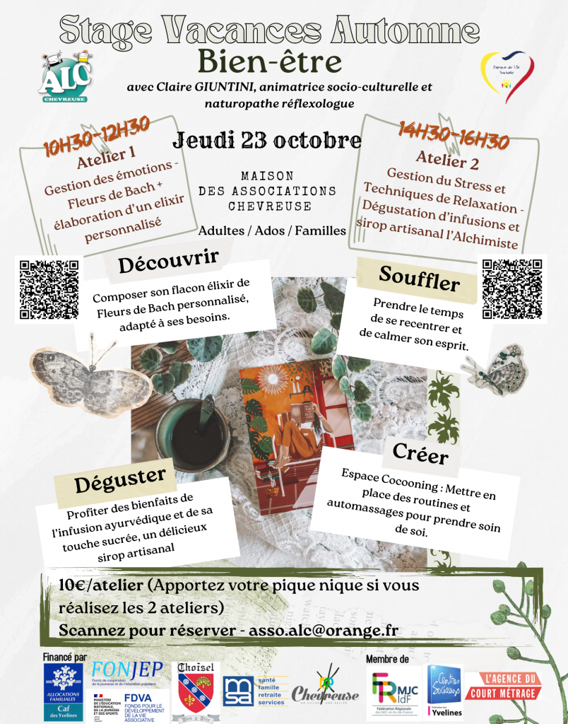 Dans le cadre du Stage Bien-être Automne, deux ateliers passionnants vous sont proposés pour prendre soin de vous naturellement.